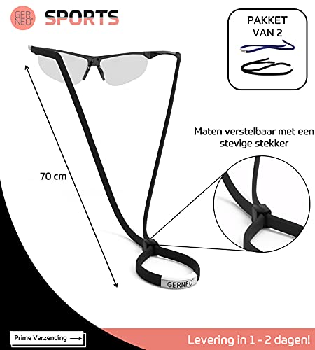 Inhoud levering: 2 x zonnebrilband in blauw en zwart met verstelbare brillus van Gerneo. Verpakt in een gerecyclede geschenkdoos zonder plastic, optimaal geschikt als cadeau-idee voor vrouwen of mannen of als Valentijnscadeau voor jezelf.