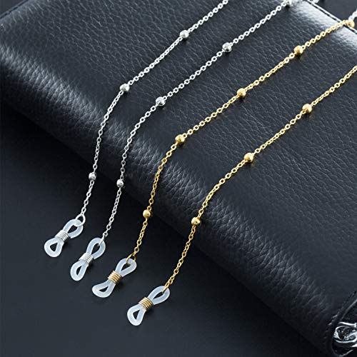 Specification: Vordas 2 stuks brillenketting voor dames, brillenkettingen goud + brillenkettingen zilver met 2-delige siliconen…