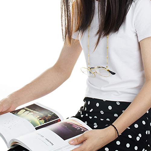 Kwaliteitsmateriaal: onze brillenketting van koperlegering en verstelbare siliconen rubberen lussen, ook ingebed met enkele metalen kralen, stevig en glanzend, licht maar voortreffelijk.