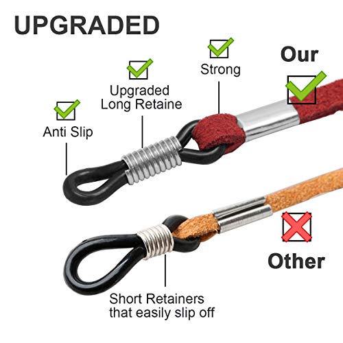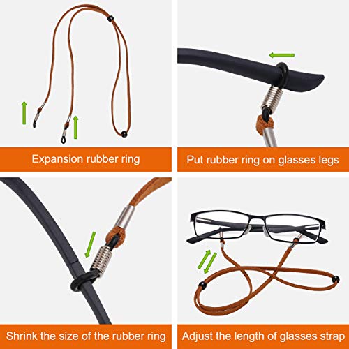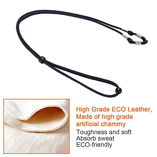 【Verstelbaar brilkoord】 De metalen ogen en antislip siliconen zorgen voor een sterke verbinding. De brilband voor dames of heren van PU-leer, robuust maar zacht, flexibel en aangenaam op de huid.