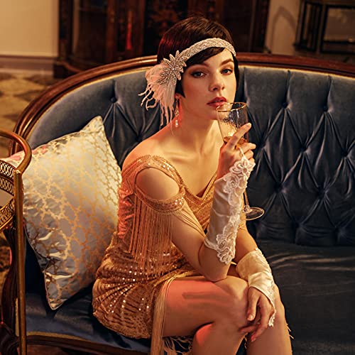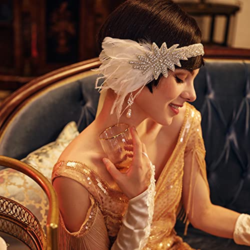 BABEYOND Hoofdband met veer voor dames, jaren 20, flapper-stijl, Charleston haarband, Great Gatsby, carnavalskostuum…
