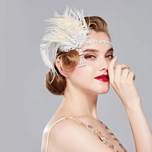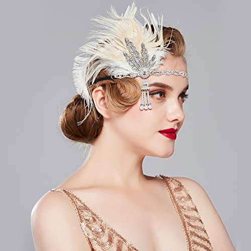 Specification: BABEYOND jaren ‘20 hoofdband met veer en bladerenpatroon met strasssteentjes voor dames, charleston haarband, Great…