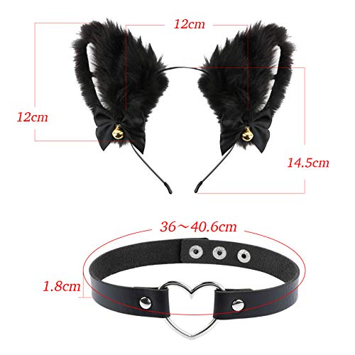Specification: FLOFIA Kattenoren haarband kattenoren haarsieraad vossenoren met hart halsketting kattenoren cosplay kostuum set…