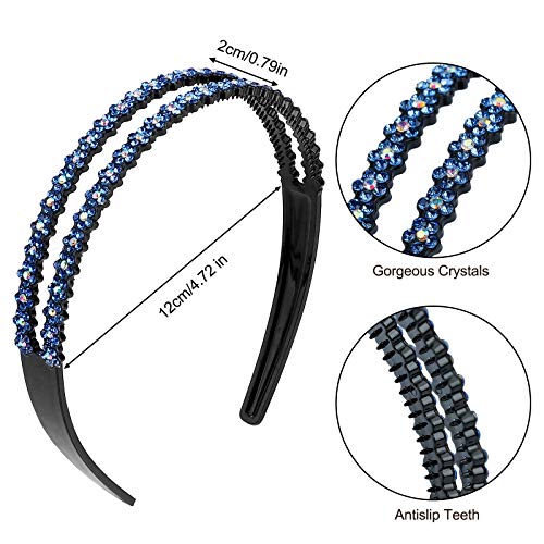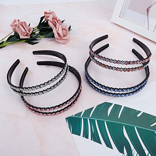 Haarband met strasssteentjes, modieus, dubbele rijen, antislip, voor vrouwen en meisjes, 4 stuks (gemengde kleur)