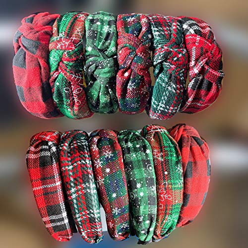 KizBruo 6 Stuks Kerst Geknoopt Plaid Hoofdbanden Mode Vintage Tulband Haarband Retro Brede Check Hoofdband Voor Vrouwen…