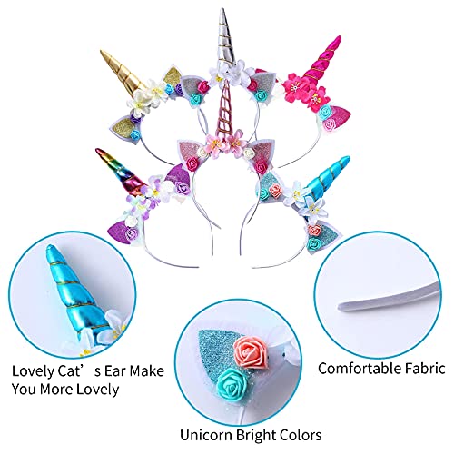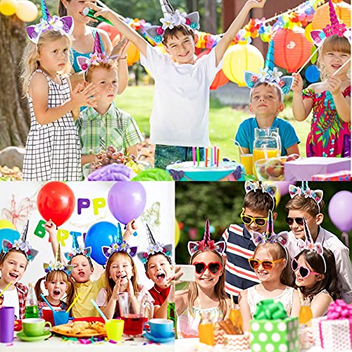 ???? 6 verschillende designs: deze hoofdbandset met 6 eenhoorns bevat 6 verschillende kleuren en stijlen, is grappiger en biedt meer keuzemogelijkheden voor verschillende feestjes.