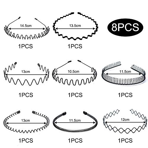 Specification: 8 stuks Spring Wave uniseks metalen haarband, zwarte haarband, antislip elastische hoofdband haarbanden haaraccessoires…