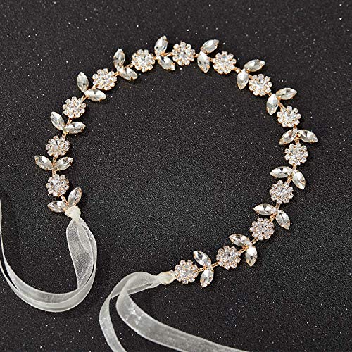 Het is gemaakt van legering met glanzende heldere strass steentjes en organza lintbanden die een vleugje elegantie toevoegen.