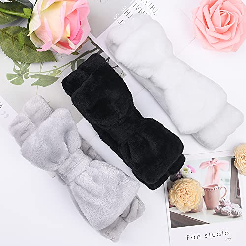 URAQT Spa Hoofdbanden voor Vrouwen, 3 Pack Pluizige Hoofdband voor Wassen Gezicht, Elastische Strik Haarbanden met 2…